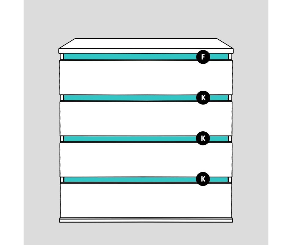 Typovo dodávame celodezénovú komodu. Farebné pásy je možné