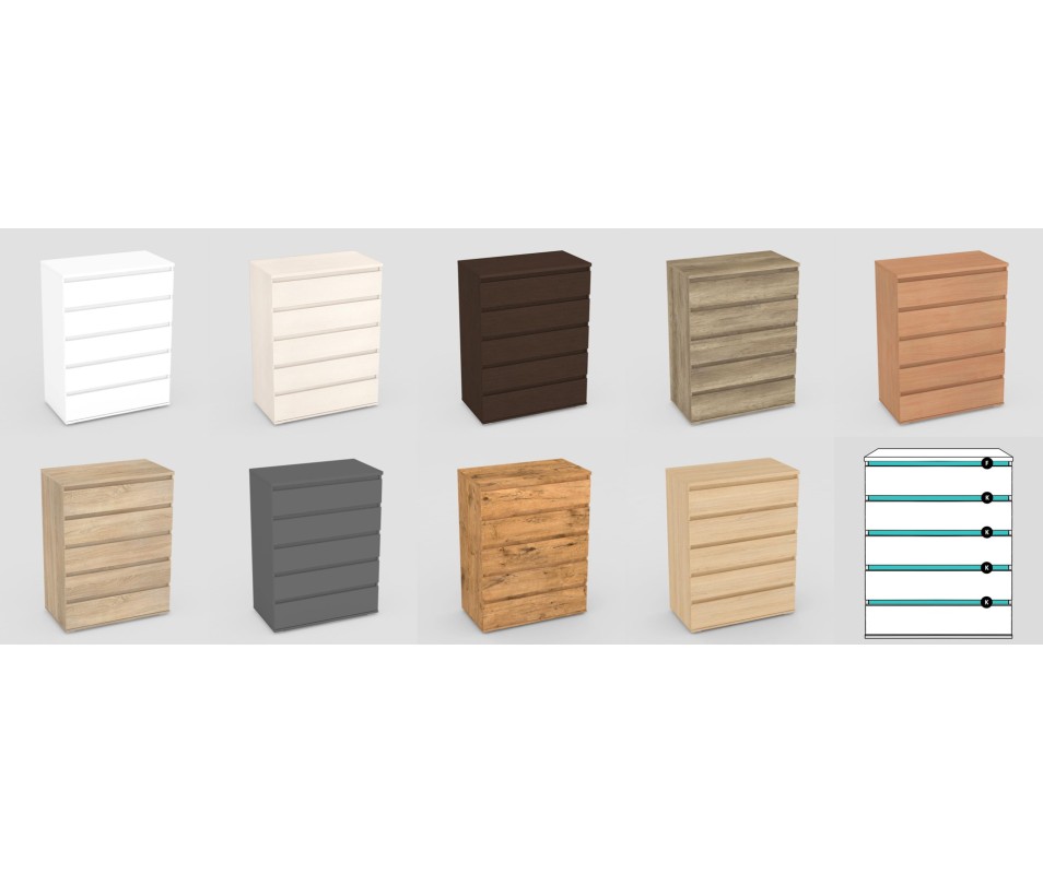 Typovo dodávame celodezénovú komodu. Farebné pásy je možné