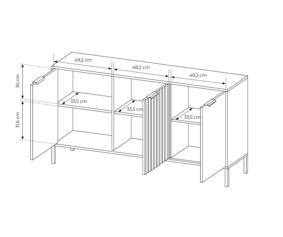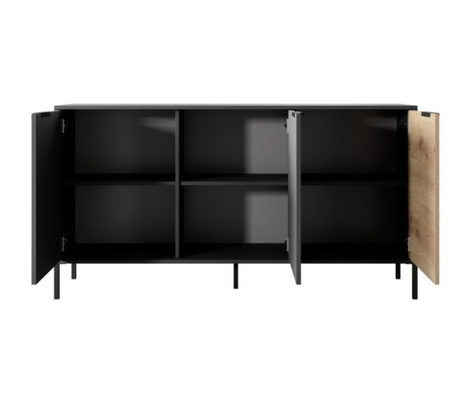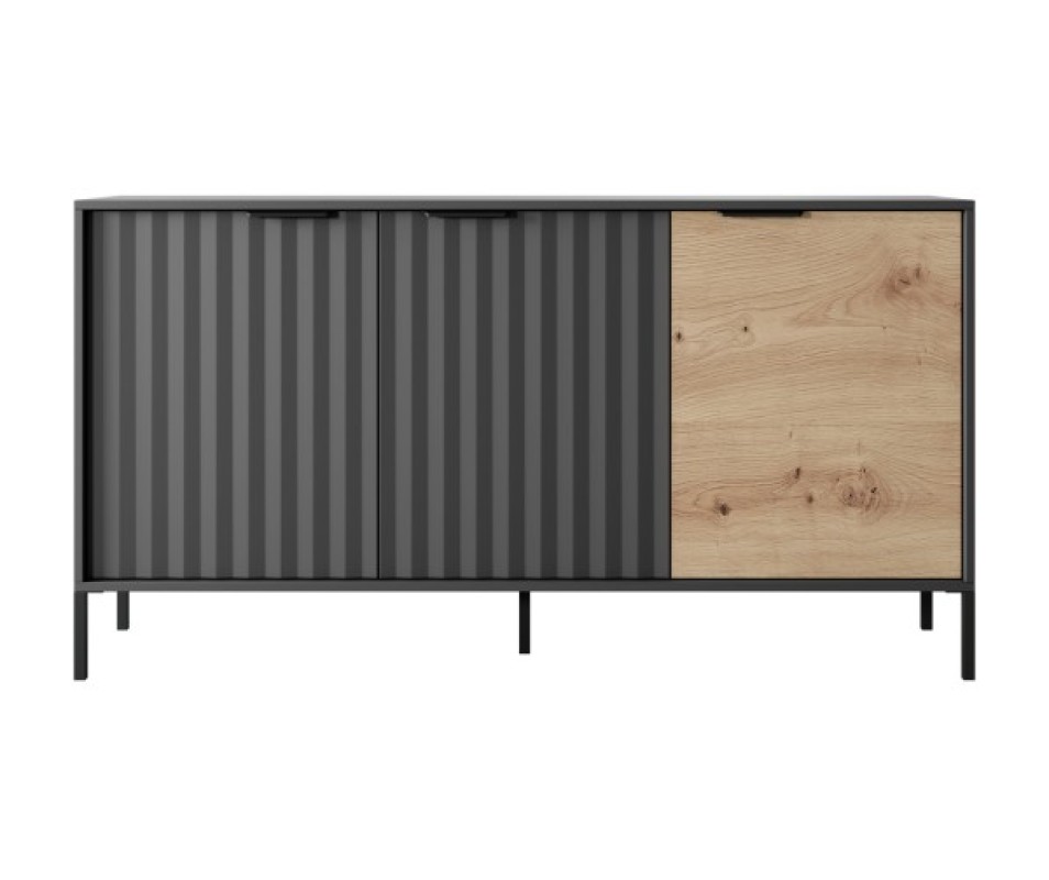 Ak chcete vytvoriť jednoduchý, harmonický aranžmán, ktorý zaujme tlmeným, jemným, no zároveň módnym a jedinečným štýlom, kolekcia RAVE je presne to, čo potrebujete. Artisan a čierna sú perfektnou kombináciou. Modernosť a originalitu nábytku dodávajú drážkované čelá z MDF, zaujímavé, asymetricky osadené úchytky v čiernej matnej a štíhle kovové nohy v rovnakej farbe. Vďaka svetlým tónom sa nábytok dokonale hodí do každého priestoru.