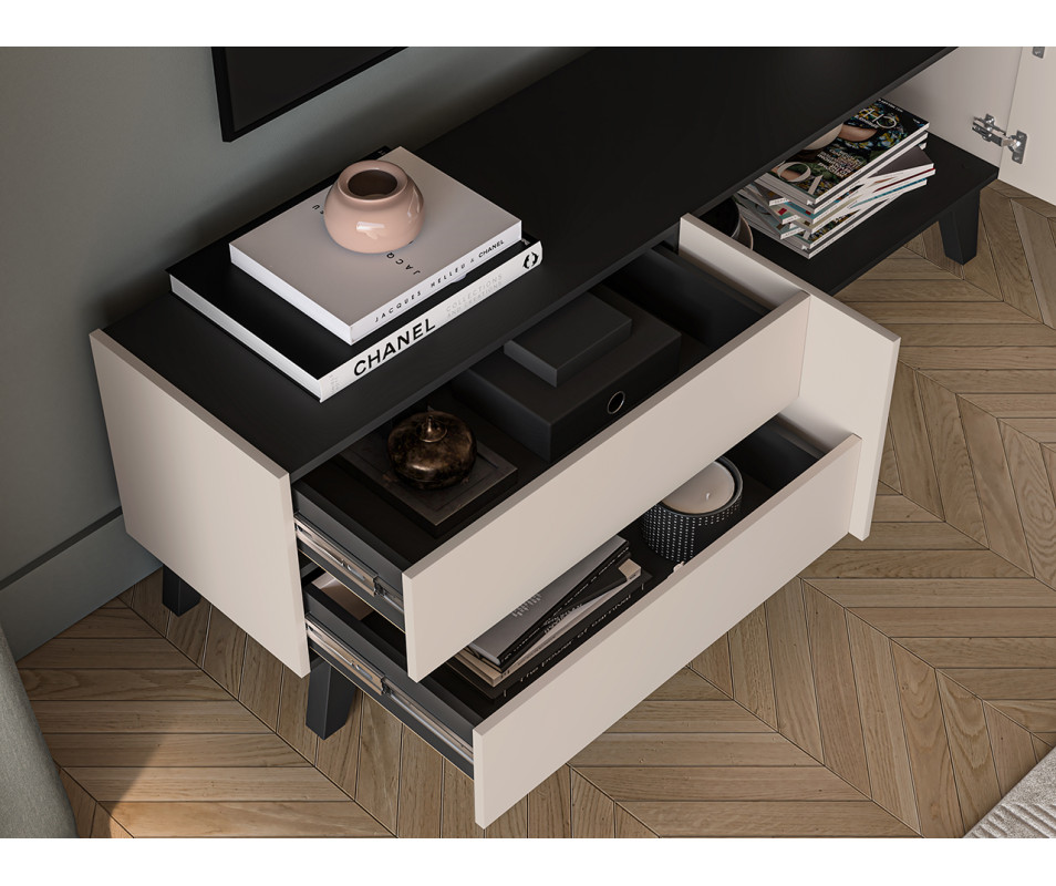 Úložný priestor: otvorený výklenok ideálny na noviny alebo knihy, spodná časť obsahuje priestrannú zásuvku.